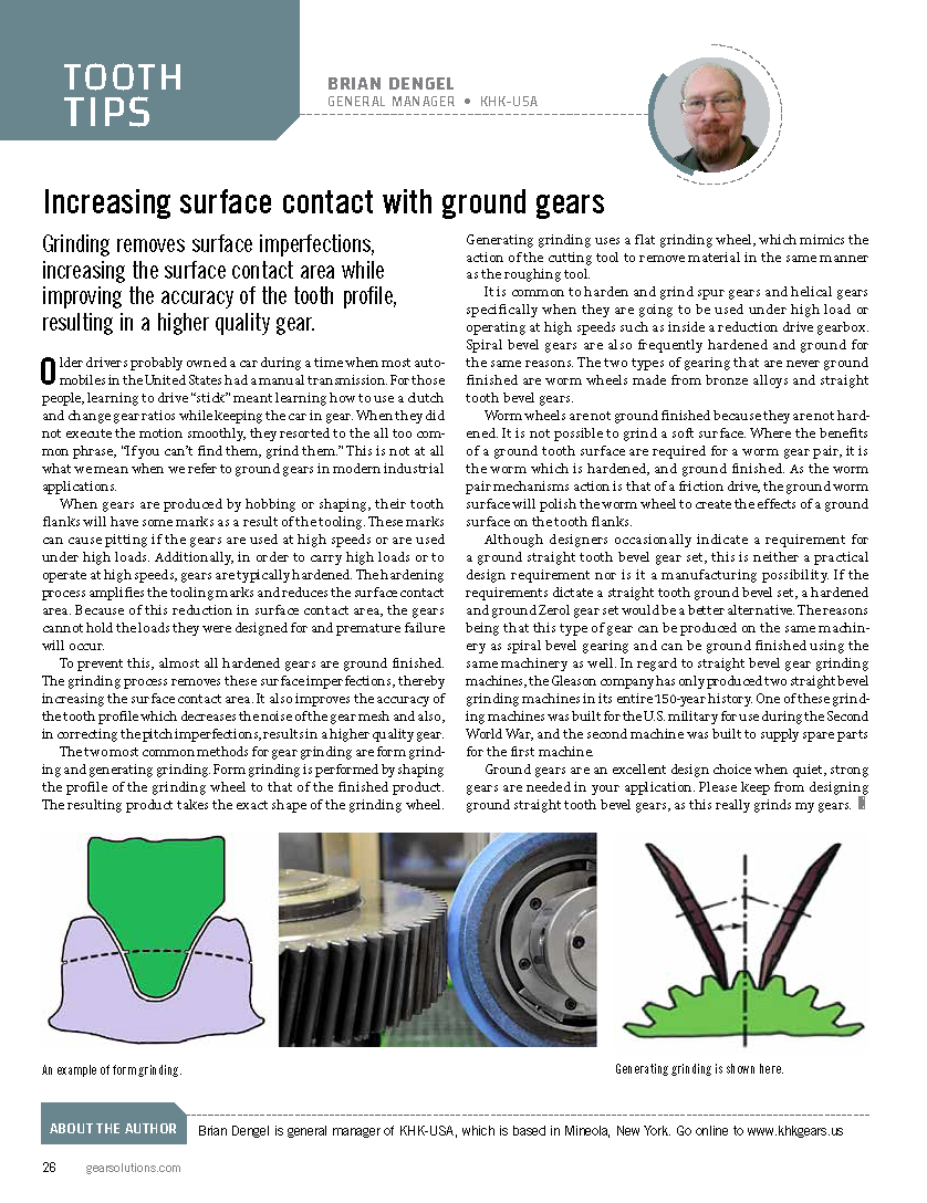 Older drivers probably owned a car during a time when most automobiles in the United States had a manual transmission. For those people, learning to drive “stick” meant learning how to use a clutch and change gear ratios while keeping the car in gear. When they did not execute the motion smoothly, they resorted to the all too common phrase, “If you can’t find them, grind them.” This is not at all what we mean when we refer to ground gears in modern industrial applications.