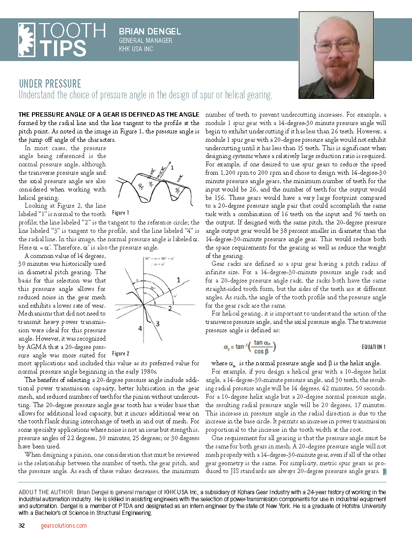 Understanding the Choice of Pressure Angle in the Design of Spur or Helical Gearing