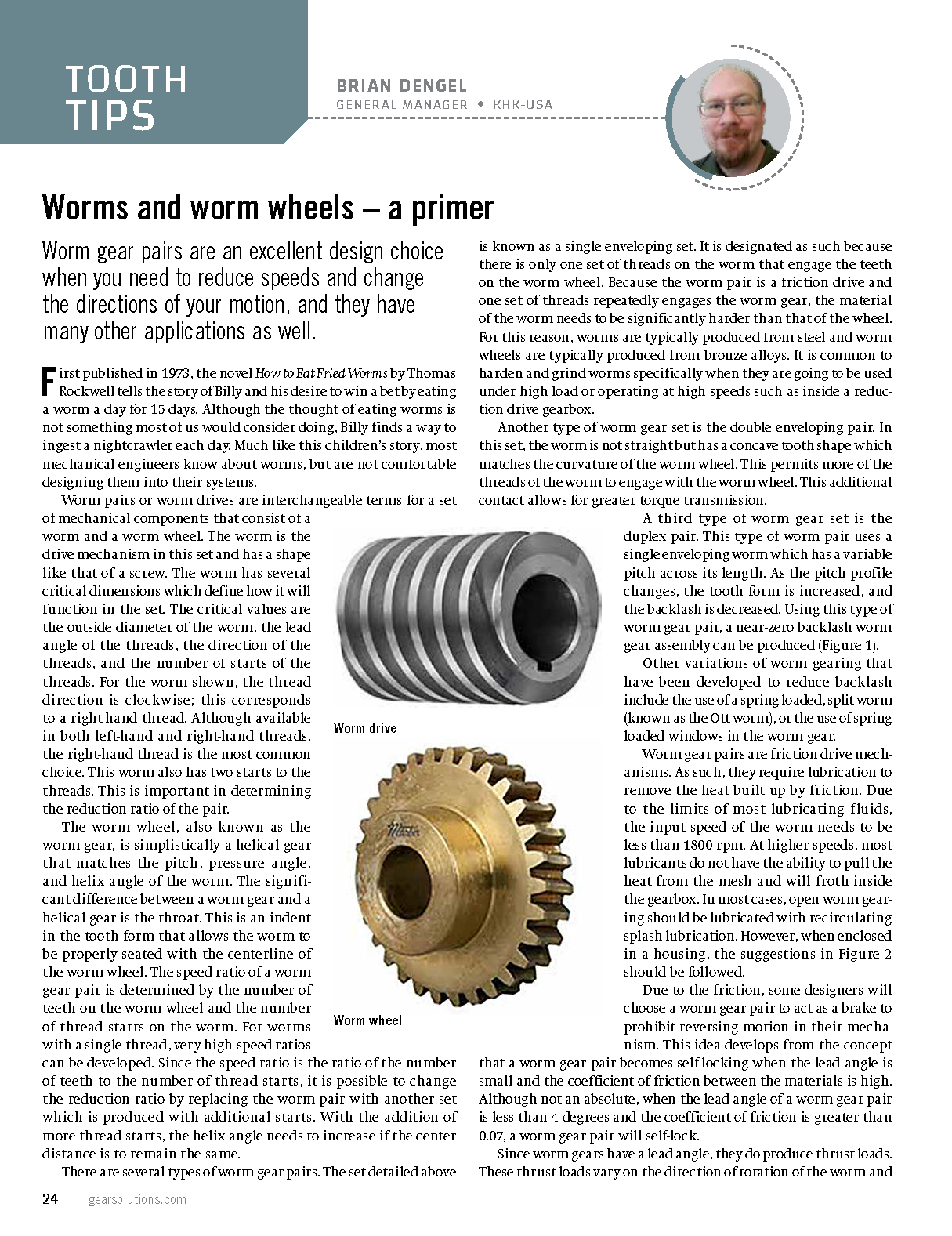 First published in 1973, the novel How to Eat Fried Worms by Thomas Rockwell tells the story of Billy and his desire to win a bet by eating a worm a day for 15 days. Although the thought of eating worms is not something most of us would consider doing, Billy finds a way to ingest a nightcrawler each day. Much like this children’s story, most mechanical engineers know about worms, but are not comfortable designing them into their systems.