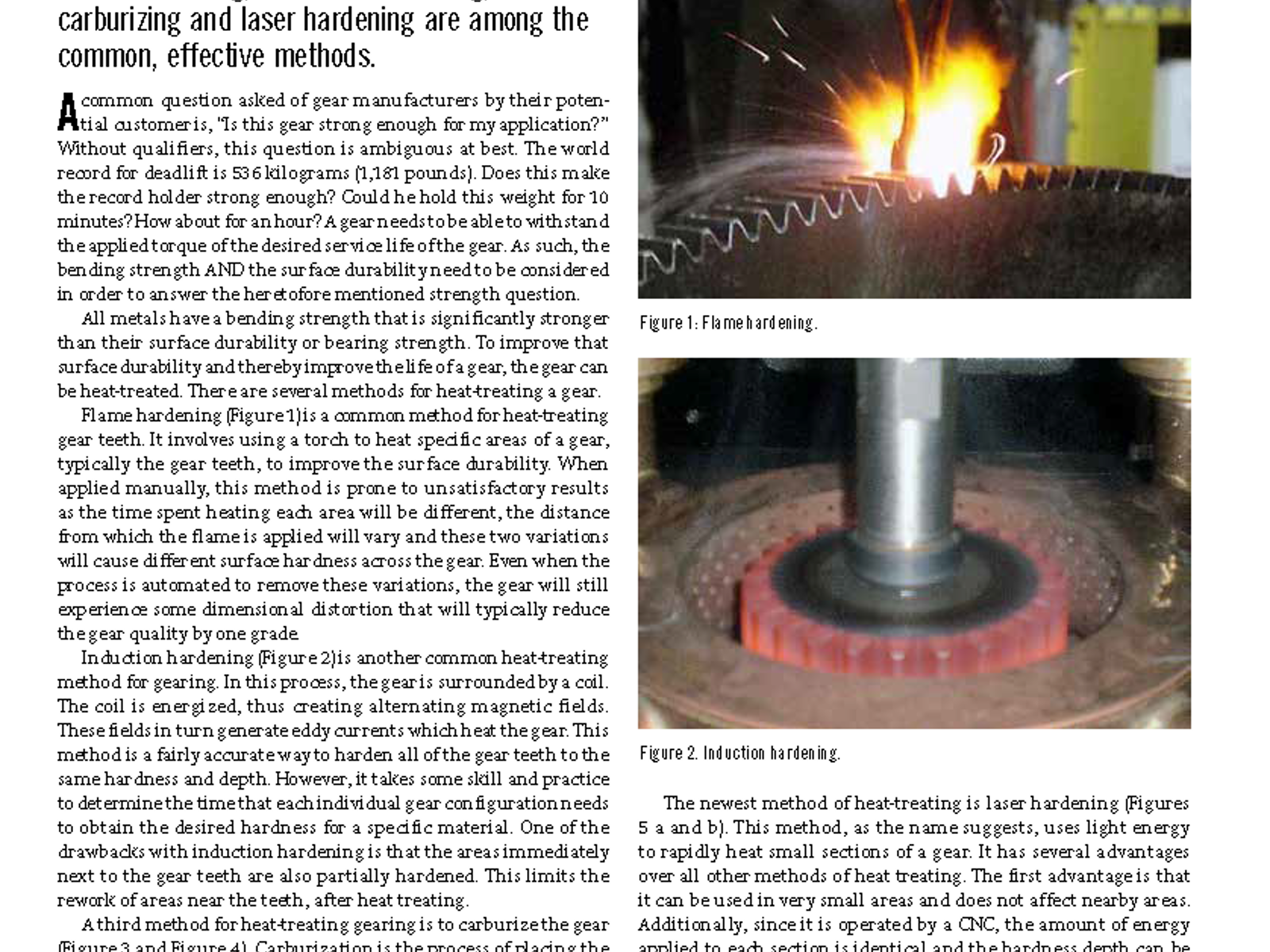 Flame hardening, induction hardening, carburizing and laser hardening are among the common, effective methods.